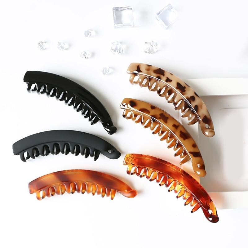 5 шт. Нежные заколки-бананы с леопардовым принтом для женщин, нескользящий захват, практичные пластиковые аксессуары для тонких волос