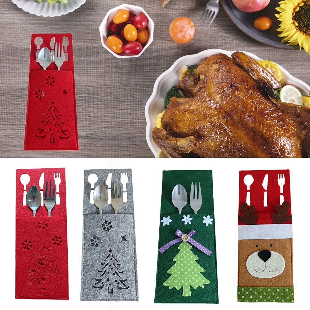 Рождественская елка Дед Мороз Чехол для столовых приборов Рождественский держатель для ножа и вилки Органайзер для посуды Украшения для стола