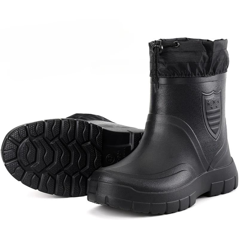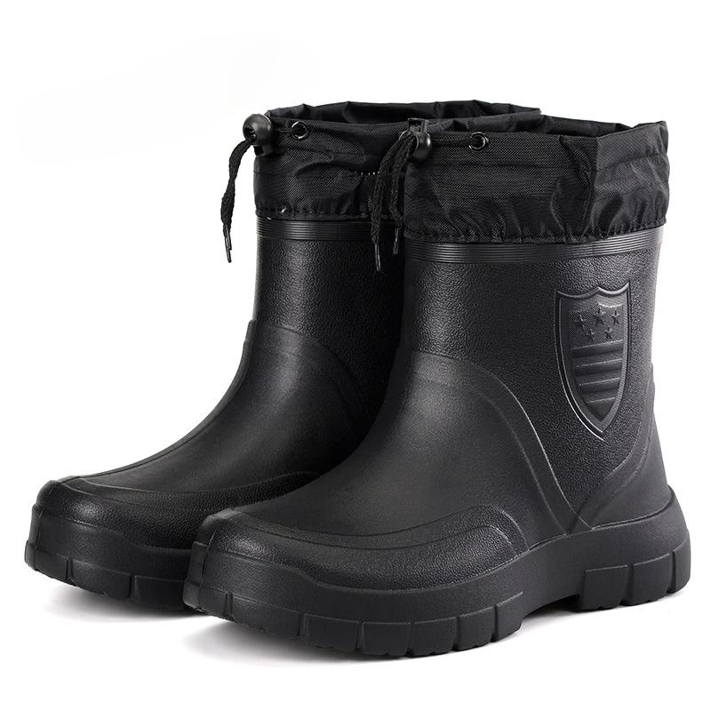 Мужские теплые легкие ботильоны для дождя, зимние ветрозащитные хлопковые резиновые сапоги, модная черная обувь для дождя слипоны, мужские водонепроницаемые рабочие ботинки
