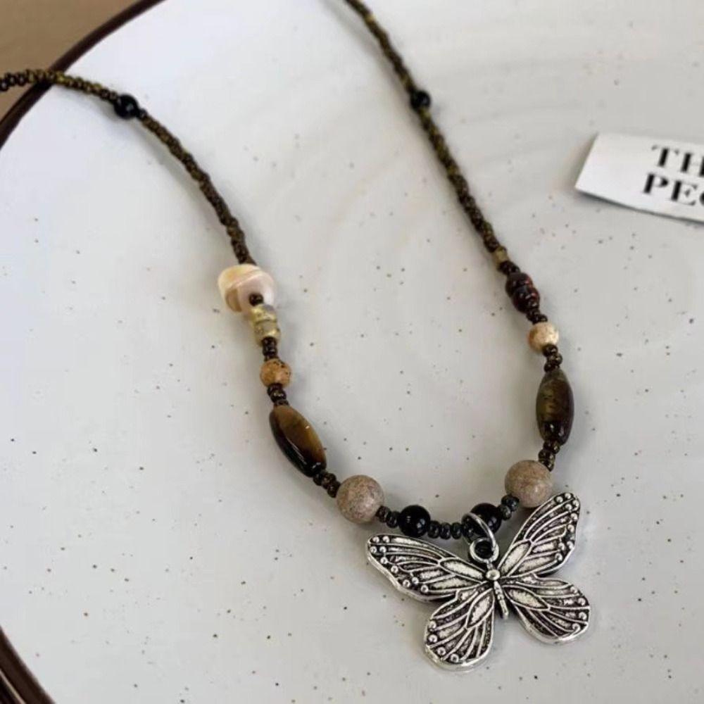 Дерево Кристалл Металл Ретро Подвеска Бабочка Камень Бисером Цепочка для Панк/Колье/Хиппи/Унисекс
