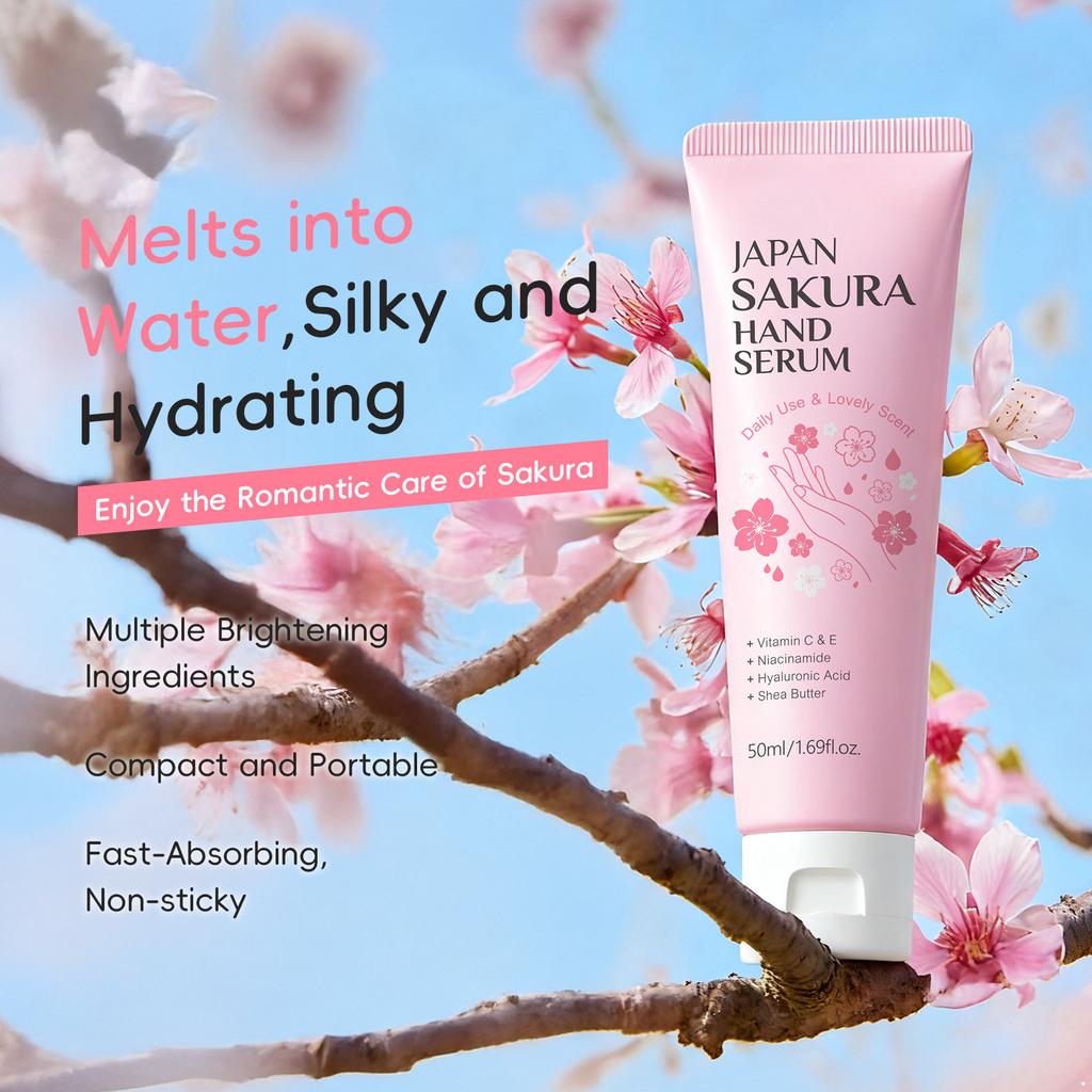 Travel-Size Sakura Scented Hand Serum - Nourishing Moisturizer for Dry Hands, Lightweight Cream for Winter and Daily Care