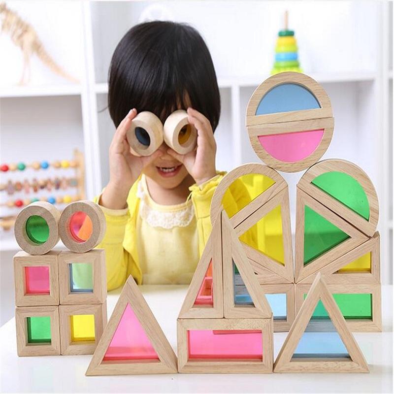 Радужный стек акриловый блок детский Монтессори деревянная игрушка красочный обучающий конструктор строительные игрушки набор для возраста 2+