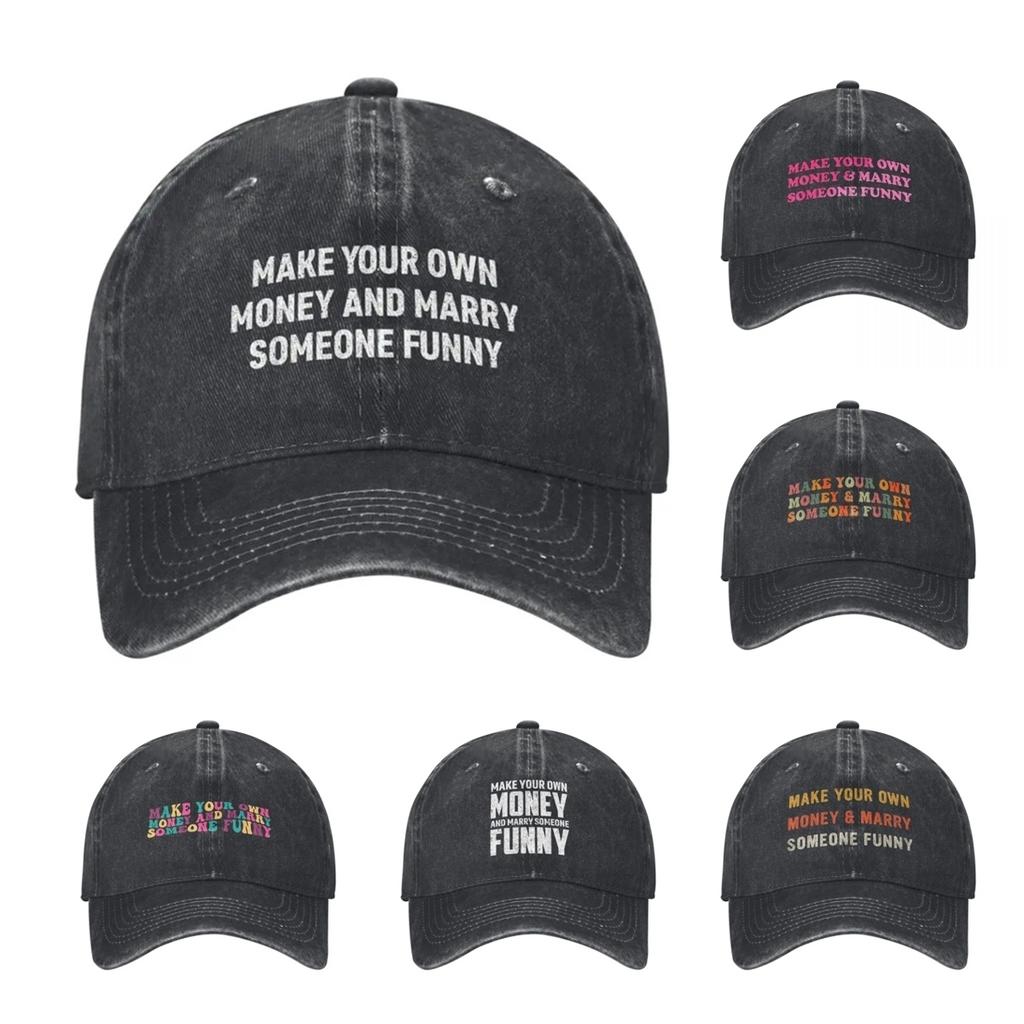 Ретро Сделай Сам Деньги и Женись на Ком-то Веселом Бейсболка Унисекс Потертый Деним Головной Убор Цитата Уличные Летние Шляпы Кепка