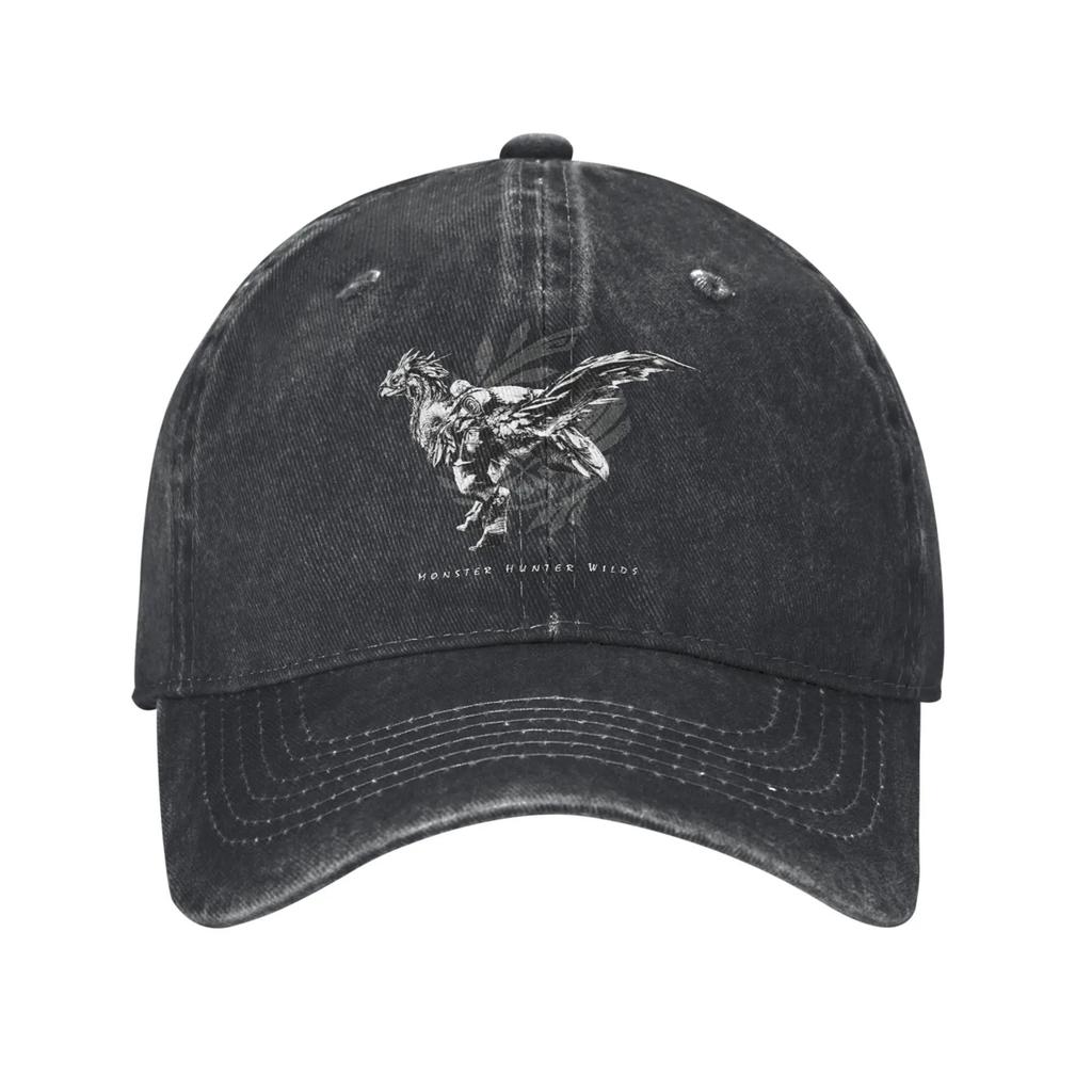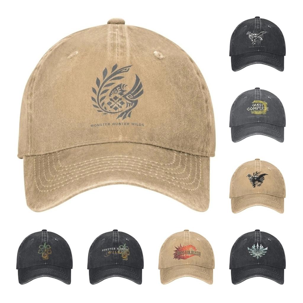 Monster Hunter Wilds Мужские Женские Бейсболки Комиссия по Исследованиям Запретных Земель Потертые Джинсовые Шляпы Винтажная Уличная Головная Одежда