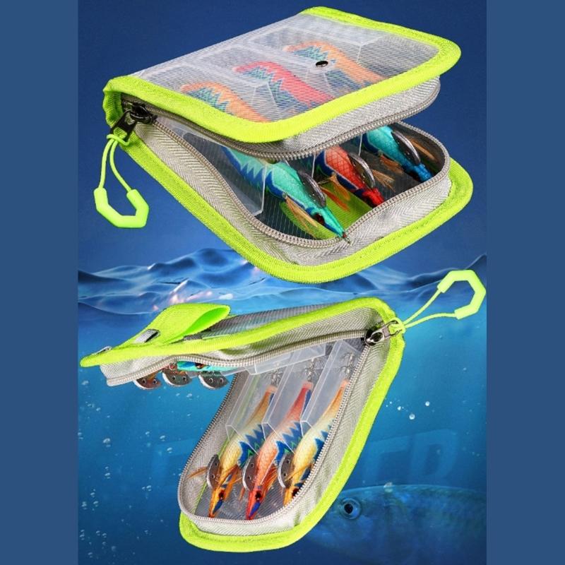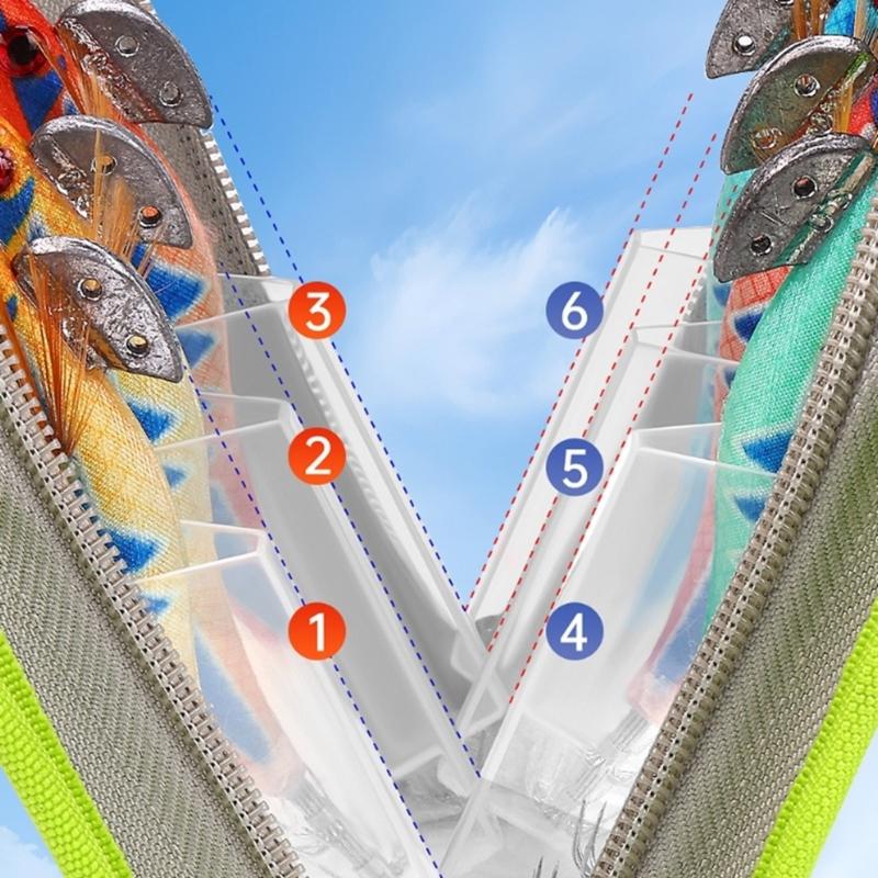 Прозрачный чехол для хранения крючков джиг-приманок для кальмаров с двусторонними молниями, портативная сумка для рыболовных приманок для крючков для кальмаров, 6 отделений