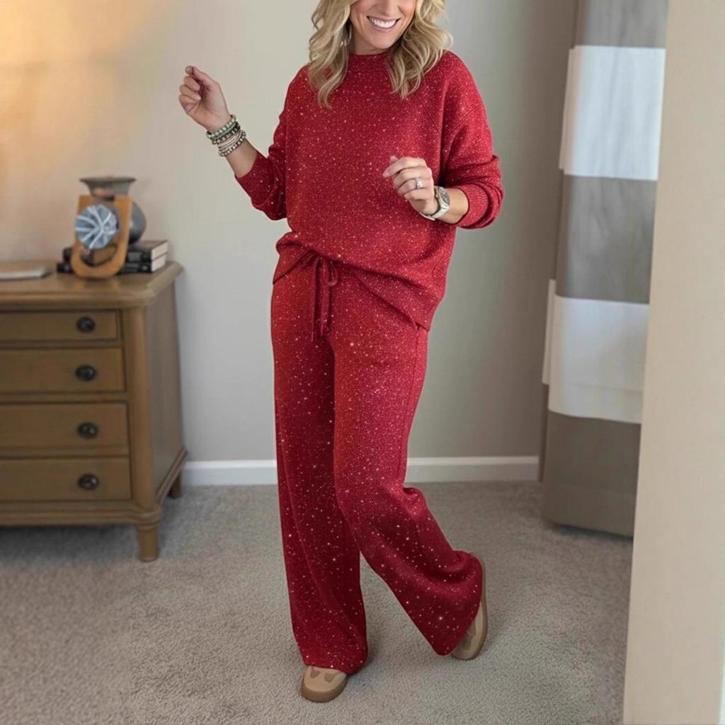 New Loose Fit Casual Two-piece Sets For Women High Waist Wide Leg Pants Glisten Hooded Sweatshirt Suit Woman Clothes — купить товар онлайн с бесплатной доставкой до всему миру!