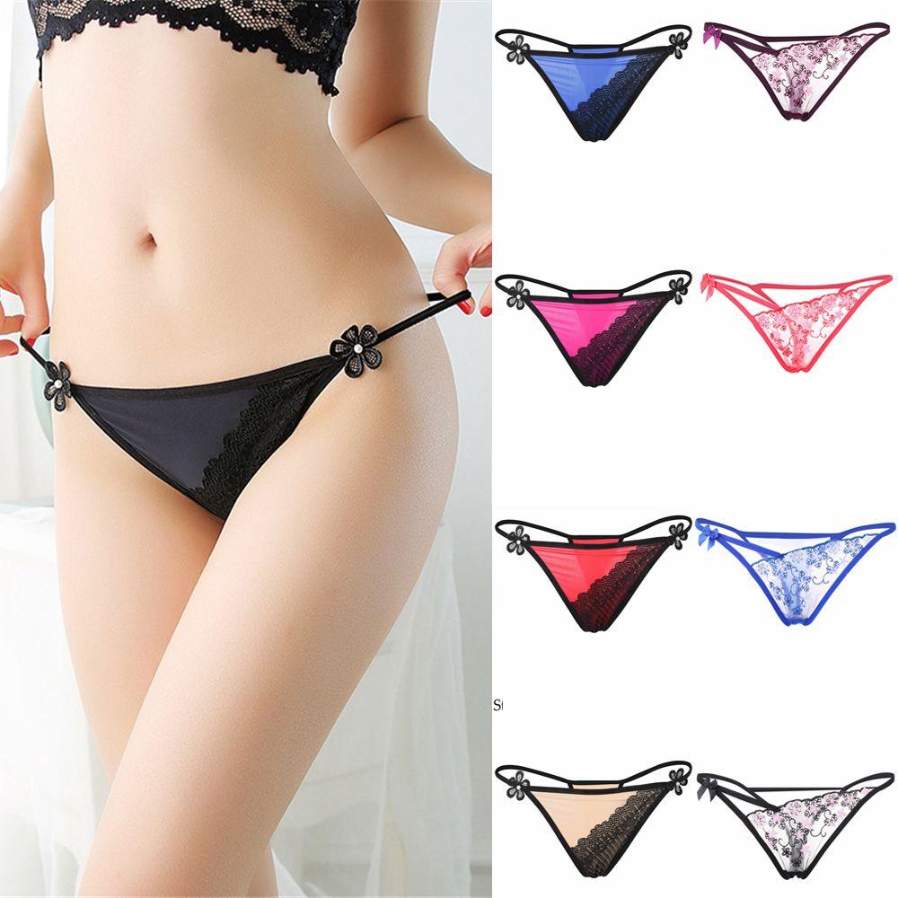 Underwear Low Waist Underpants T-back G-string Lace Flowers Sexy Panties Women Erotic Lingerie