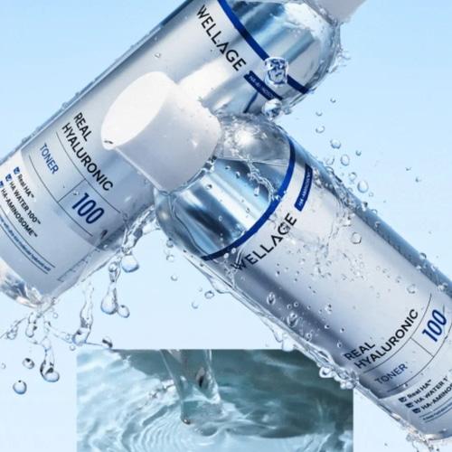 WELLAGE Real Hyaluronic 100 Toner is a moisture-charged toner formulated with a powerful blend of low, medium, and high molecular weight hyaluronic acids, delivering deep hydration across all layers of the skin.