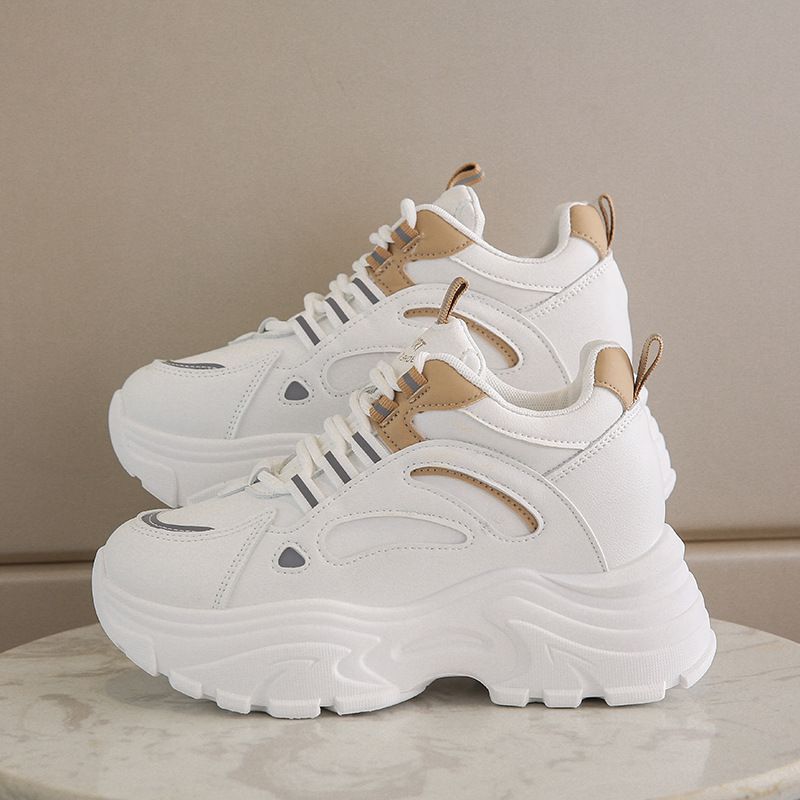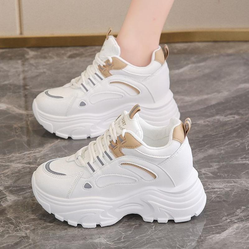 Осень Новые Женские Массивные Кроссовки Корейские Увеличивающие Рост Подошвы Универсальные Повседневные Дышащие Толстые Туфли для Женщин