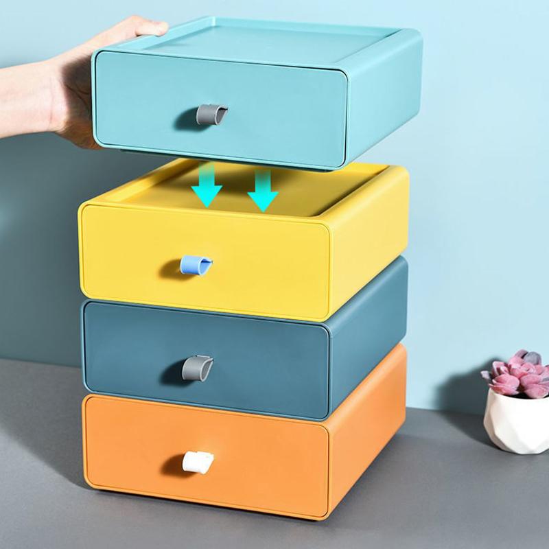 Настольный штабелируемый органайзер-ящик Офисные аксессуары Цветной ящик для хранения Косметика Пластиковый контейнер для хранения Хранение в ванной 1 шт.