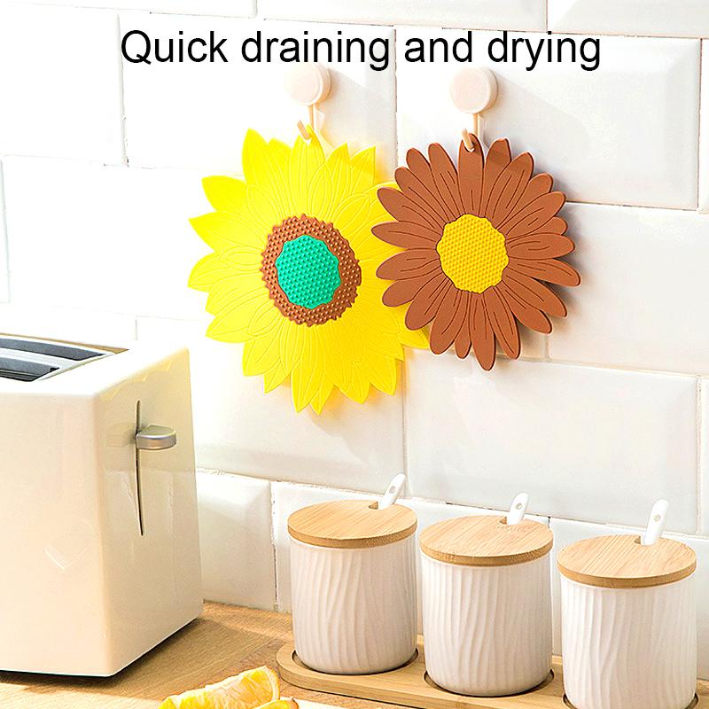2Pcs Sunflower PVC Heat Insulation Pad Household Bowl Mat Kitchen Cartoon Special-shaped Soft Rubber Table Mat Anti-scald Coaste