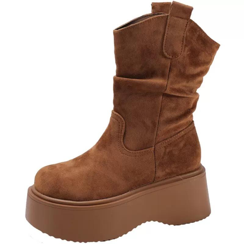 Массивный каблук-платформа Женские ботильоны Дизайн Круглый носок Обувь слипоны Женские Панк Винтаж Короткие ботильоны Де Мухе