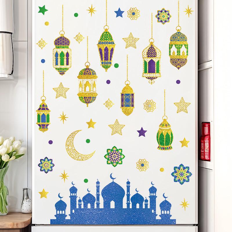 Украшения для стен на фестиваль Ближнего Востока Луна Звезда Фонарь Украсить Стеклянные Наклейки Съемные Клейкие Наклейки на Стену