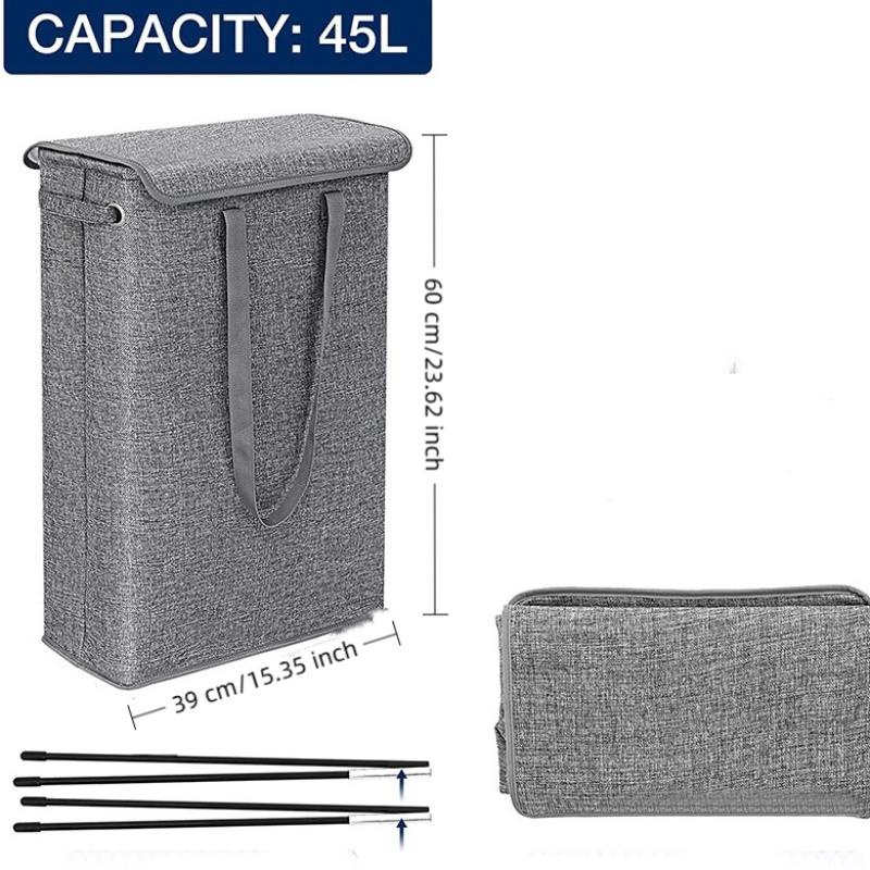 45L Thin Laundry Basket With Cover Narrow Hand Fine Hand Dirty Laundry Basket Bedroom Kindergarten Whole Basket Storage Bag