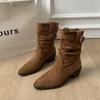 Осенне-зимние женские ботильоны из замши с острым носком, модные туфли на толстом каблуке, элегантные женские ботильоны