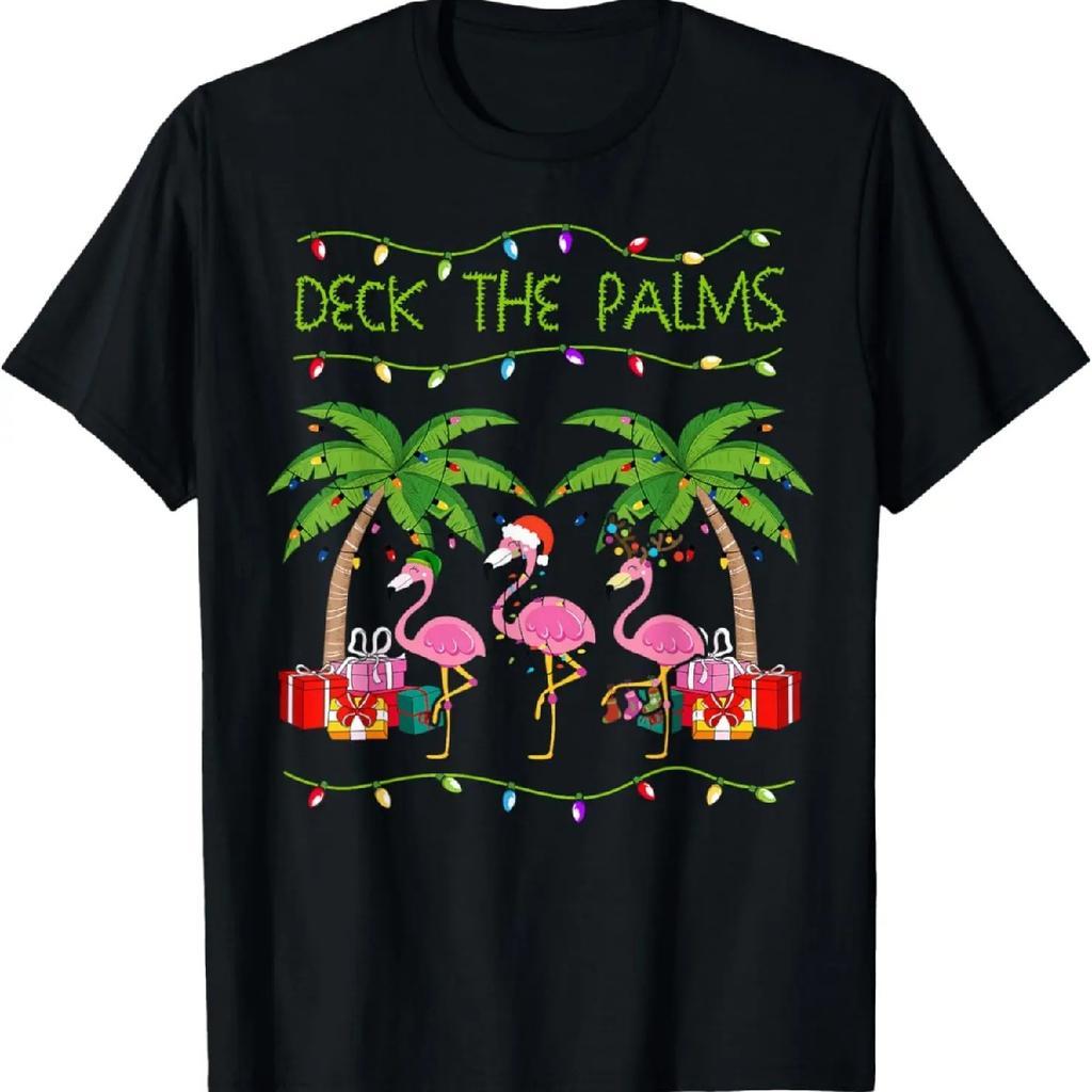 Забавная футболка с идеей «Украсьте пальмы, весёлый фламинго, Рождество в июле»