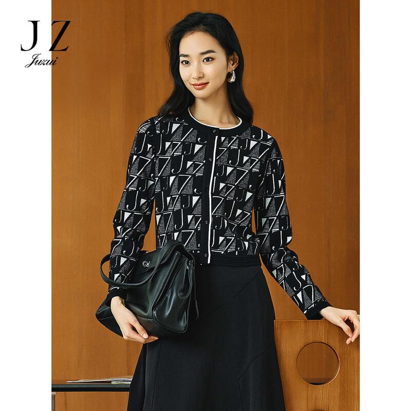 Женский винтажный кардиган из шерсти жаккардового плетения с цветочным узором JUZUI