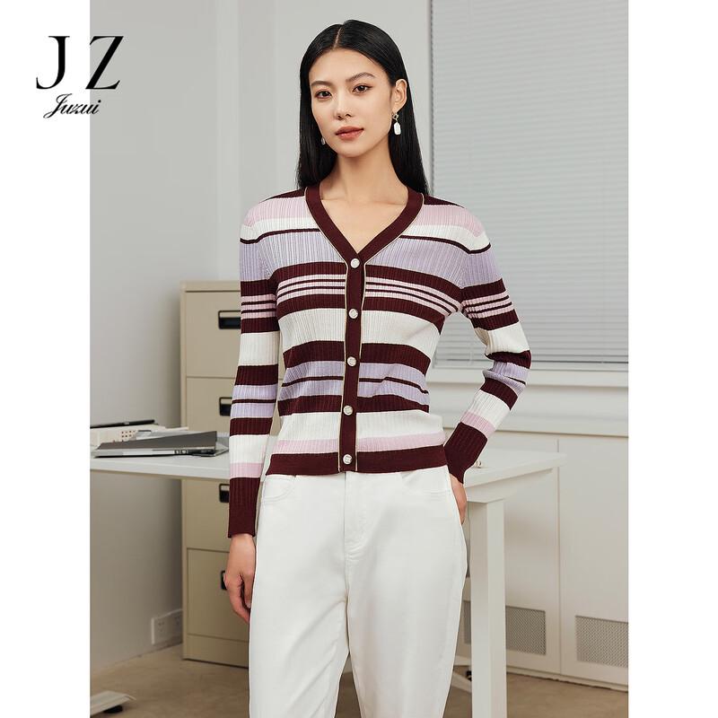 JUZUI Women's Striped Color-block Wool Knit Sweater