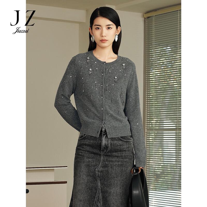 JUZUI Women's Elegant Beaded 100% Wool Knit Sweater