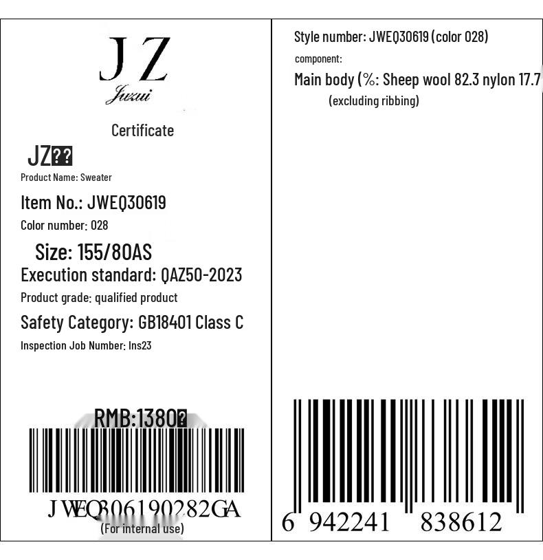Женский вязаный свитер JUZUI из смесовой шерсти с круглым вырезом