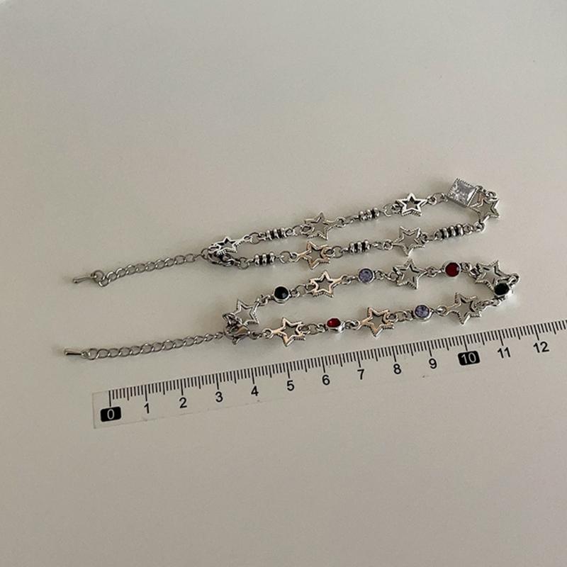 Браслет Серебряного Цвета в Виде Полой Пятиконечной Звезды, Браслет с Цирконом, Женская Модная Гранж Бижутерия, Регулируемый Браслет