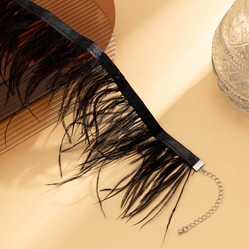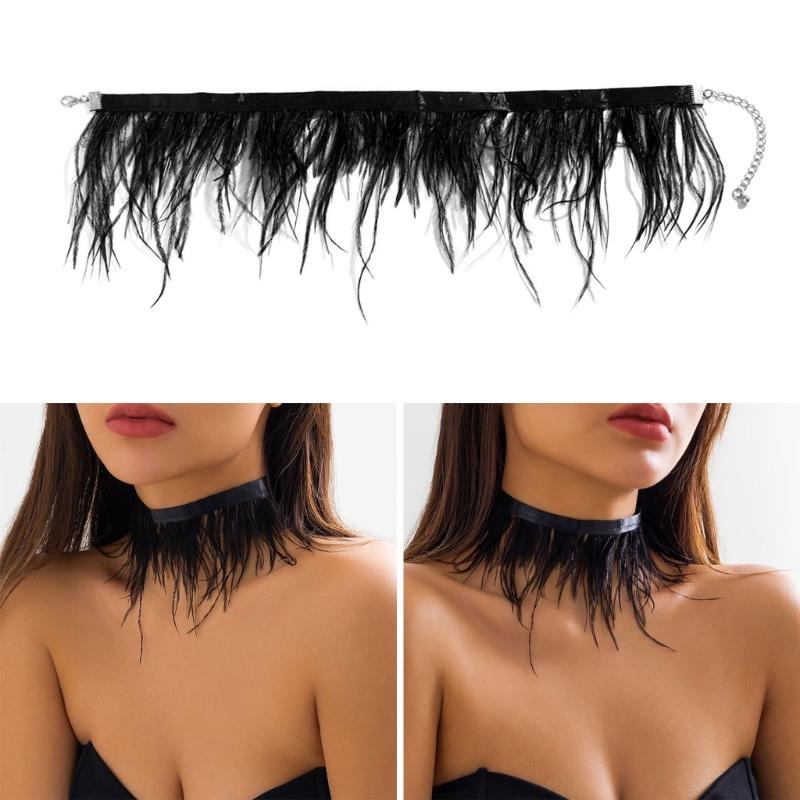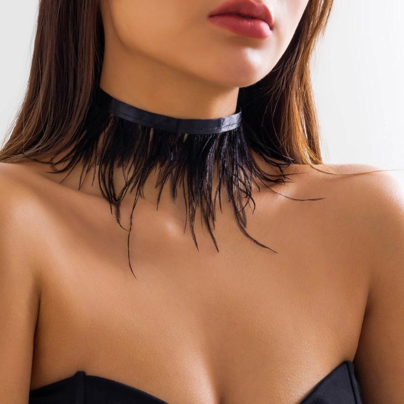 Уникальное черное ожерелье-чокер с перьями, винтажная цепочка для ключицы, ювелирные изделия, модные готические шейные цепочки, аксессуары для вечеринок