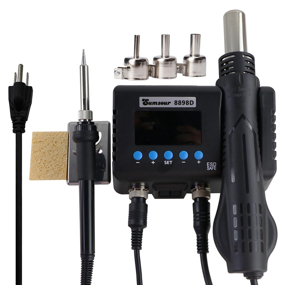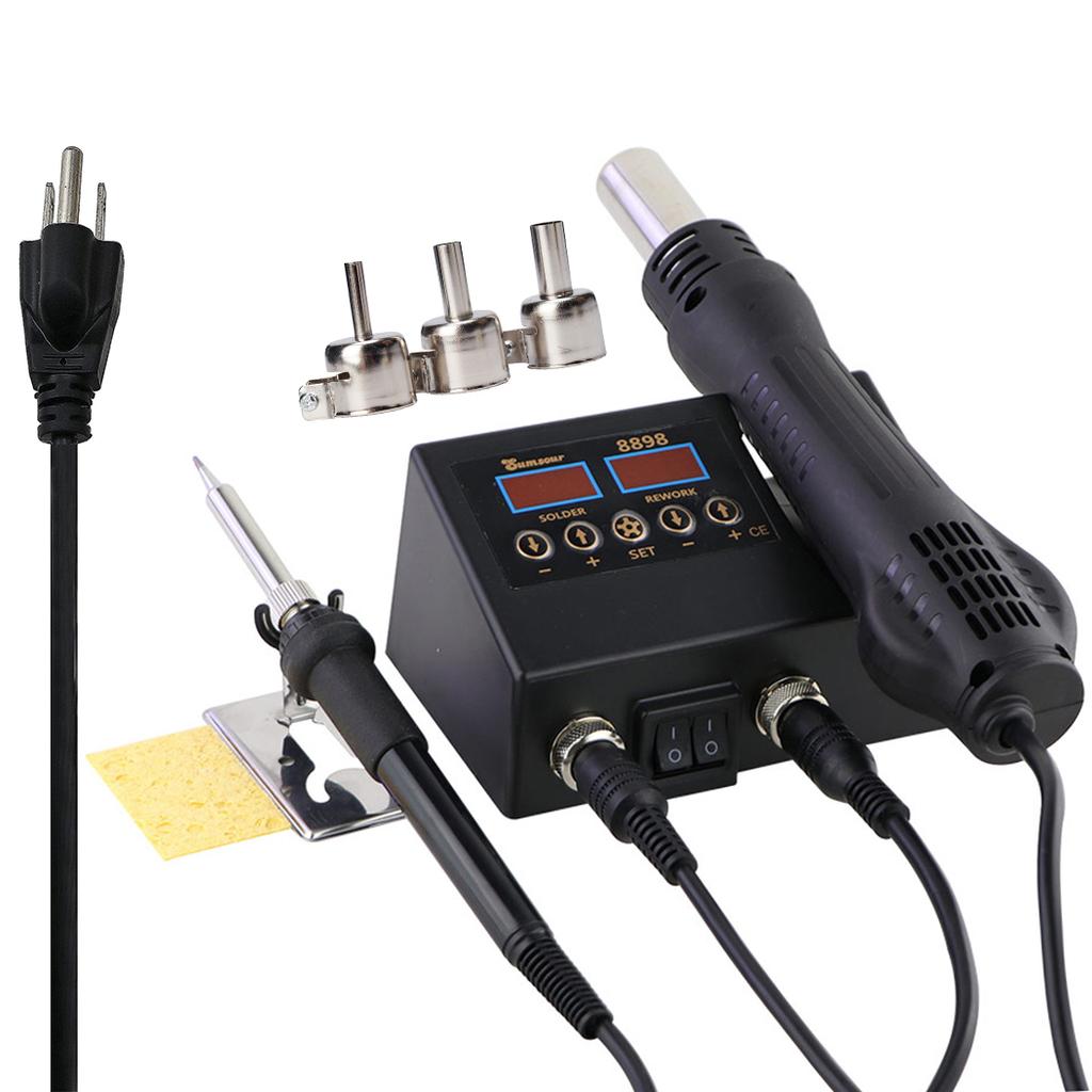 Паяльная станция 8898 2-в-1 с цифровой регулировкой температуры, термовоздушная пушка для SMD пайки, демонтажа, реболлинга, ремонтный инструмент