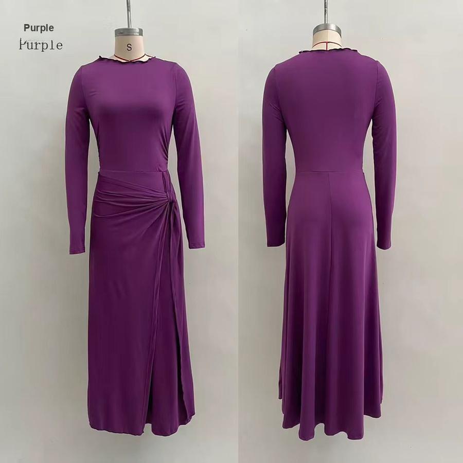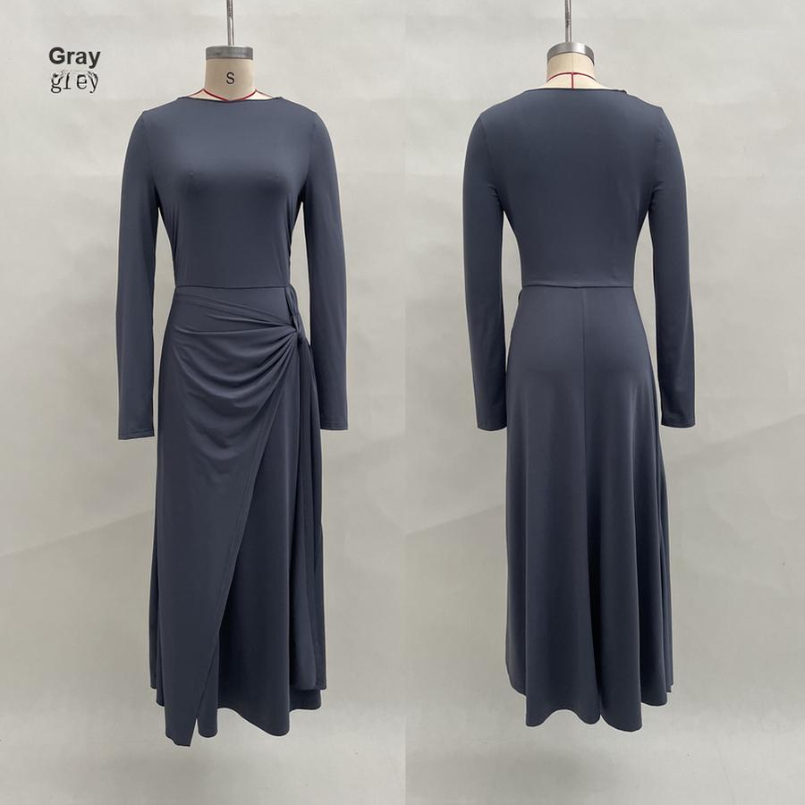 Осень Новые Женские Платья Однотонное Элегантное Платье-запа́х Длинное с Декором Длинный Рукав