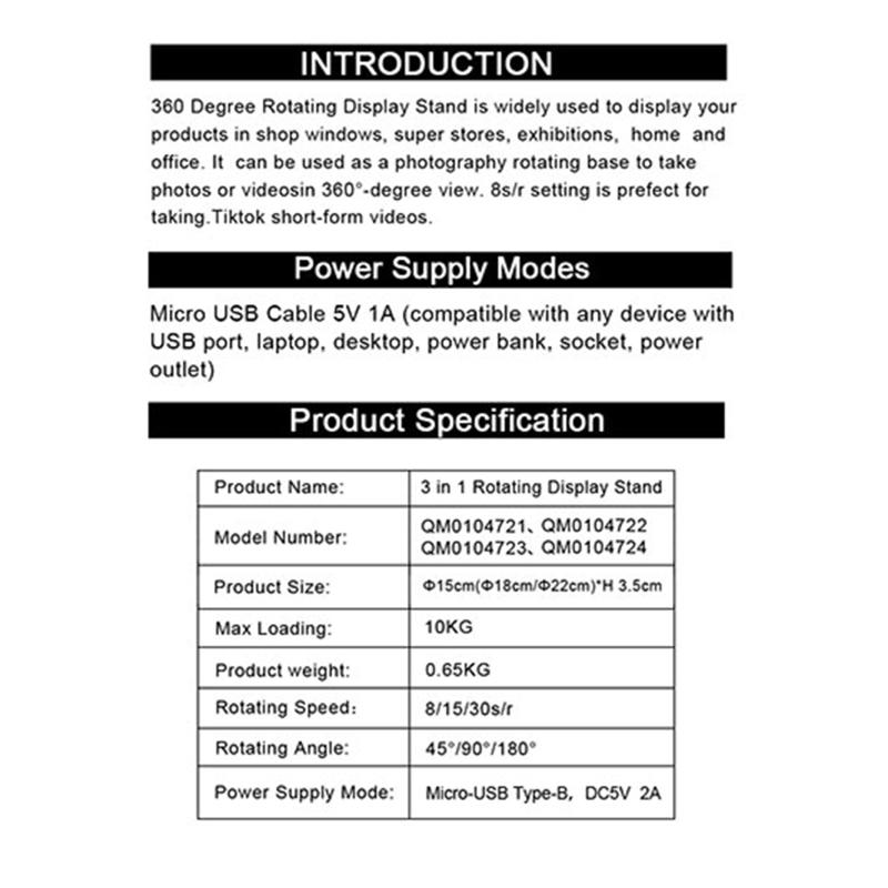 3 в 1 360 градусов 5 В Электрический Автоматическое вращение Фотография Вращающийся столик Дисплейная подставка Дисплейный вращающийся столик (Черно-белый)