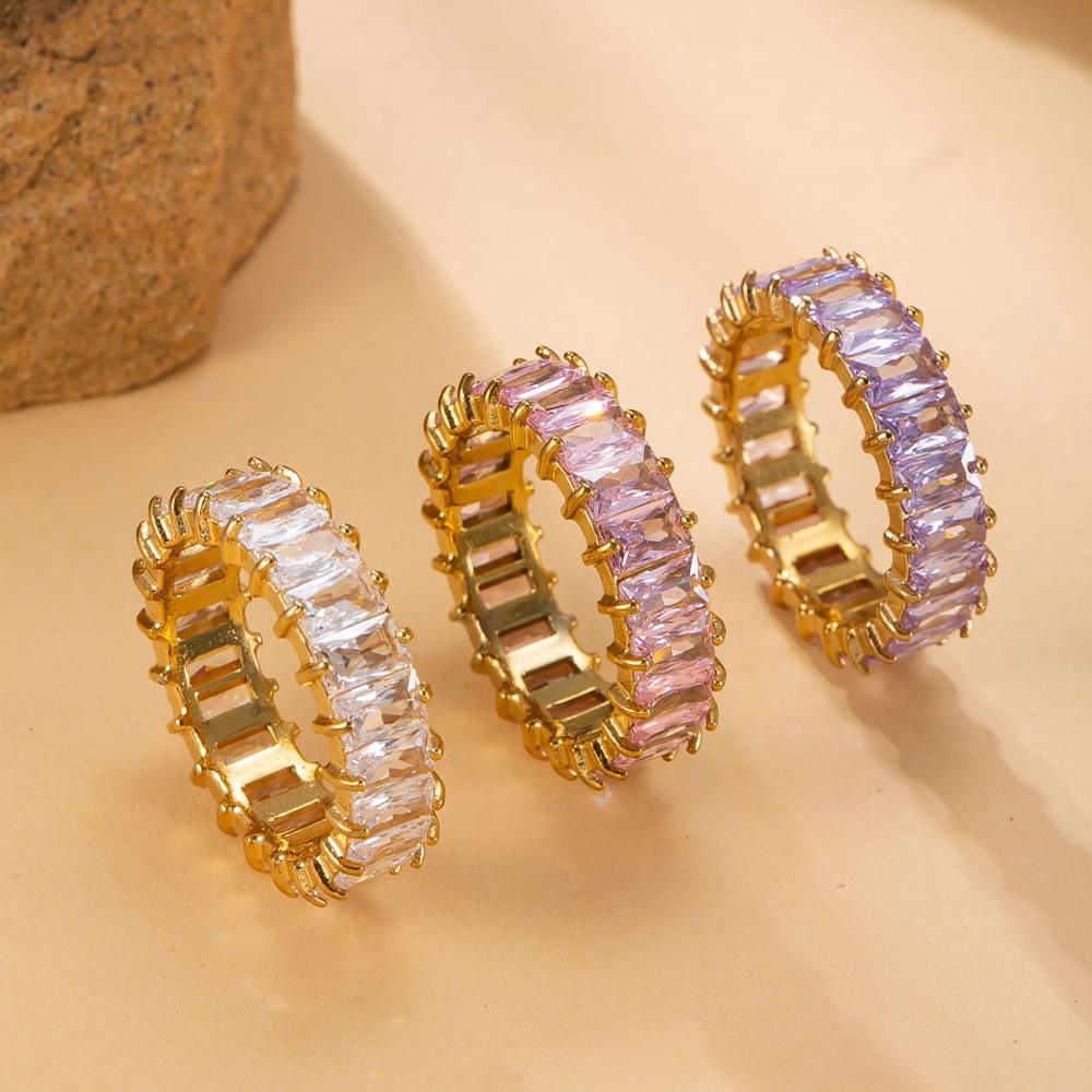 Украшения из титановой стали Корейская версия Легкая роскошь Позолоченное 18к Кольцо на указательный палец Квадратный цветной бриллиант Кольцо из нержавеющей стали Фабрика