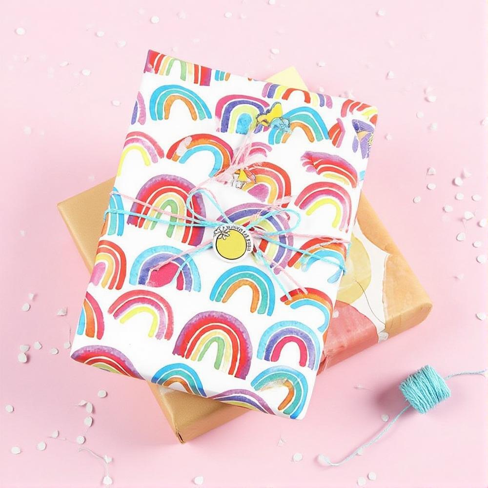 300*43cm 1 Roll Wrapping Paper Rainbow Polka Dots Star Gift Packaging Paper DIY Craft Paper Festival Birthday Gift Decor Paper