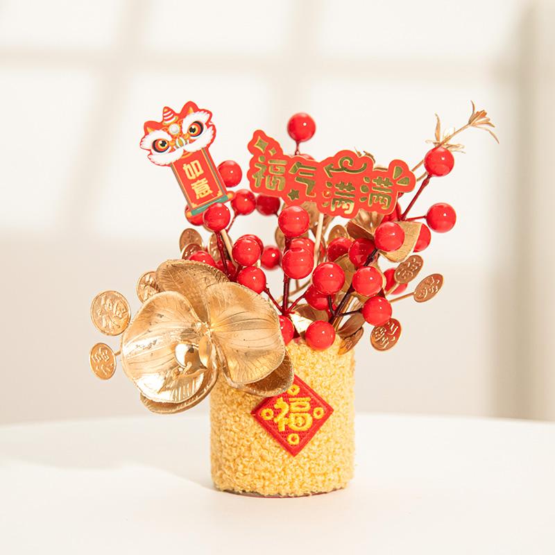 2026 Chinese Wealth Fruit Pot Decoration Chinese New Year Desktop Ornament Spring Festival Gift Decor Blessing Flower Bucket