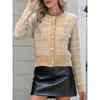 Женский клетчатый вязаный кардиган, женское пальто, яркий кирпичный цвет, бант, жемчужные пуговицы, модный свитер