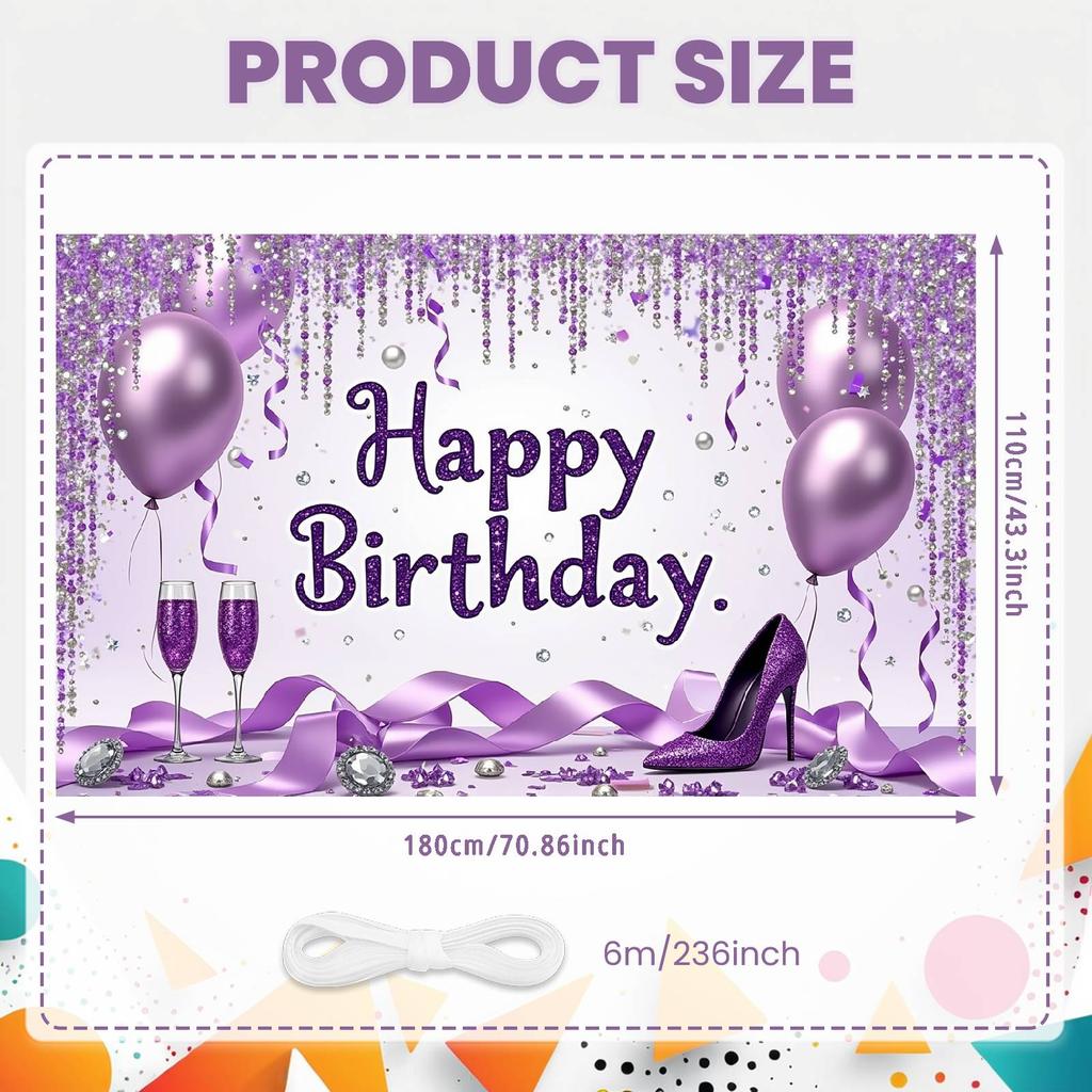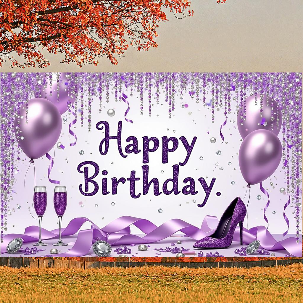 Баннер С Днем Рождения Фиолетовый Синий Воздушный шар Блестящий дизайн Декорация для фона на день рождения Реквизит для фотосъемки