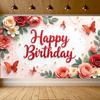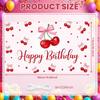 Баннер С Днем Рождения Милый Розовый Бантик Вишневый Узор Украшение для Вечеринки в честь Дня Рождения Задний План Фруктовая Тема Фотофон для Съемки