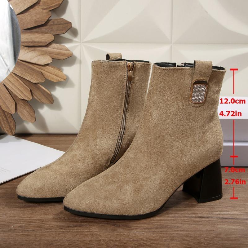 Женские ботильоны Новые модные ботильоны на квадратном каблуке с пуговицами из стразов и боковыми молниями, с острым носком, из замши, на высоком каблуке
