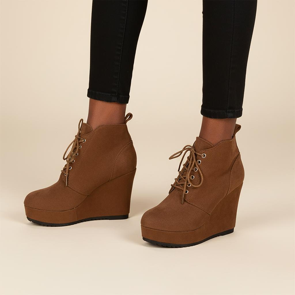 Женские ботинки больших размеров на массивной платформе, ботильоны до щиколотки, женские новые осенне-зимние ботильоны, модная шнуровка, обувь на танкетке для женщин