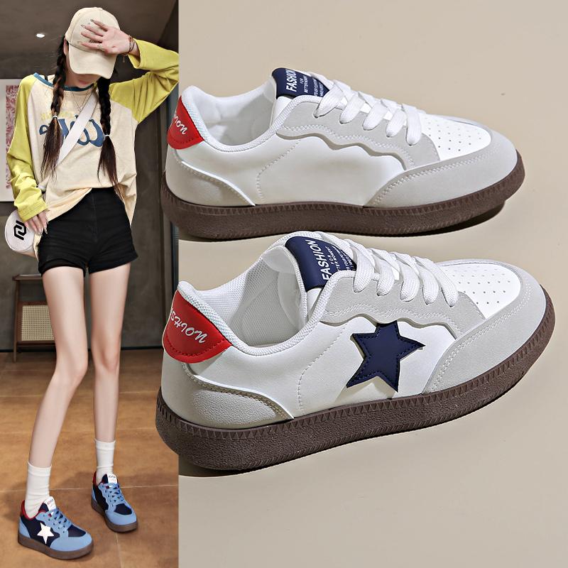 Ретро Белые Туфли на Толстой Подошве для Женской Весны Лета Новые Круглый Носок Повседневные На Шнуровке Простые Удобные Женские Кеды