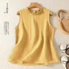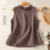 Богемный Ретро Однотонный Простой Стиль Топ без Рукавов Летние Новинки Лен Хлопок Женский Жилет с Круглым Вырезом