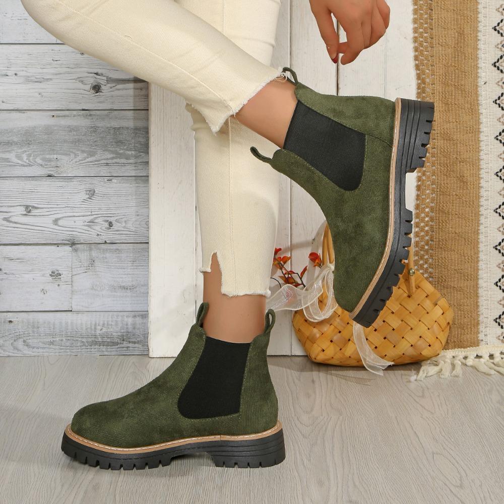 Зима Новые замшевые женские ботильоны Обувь на платформе Повседневные ботинки челси Модные мотоциклетные короткие ботинки для женщин