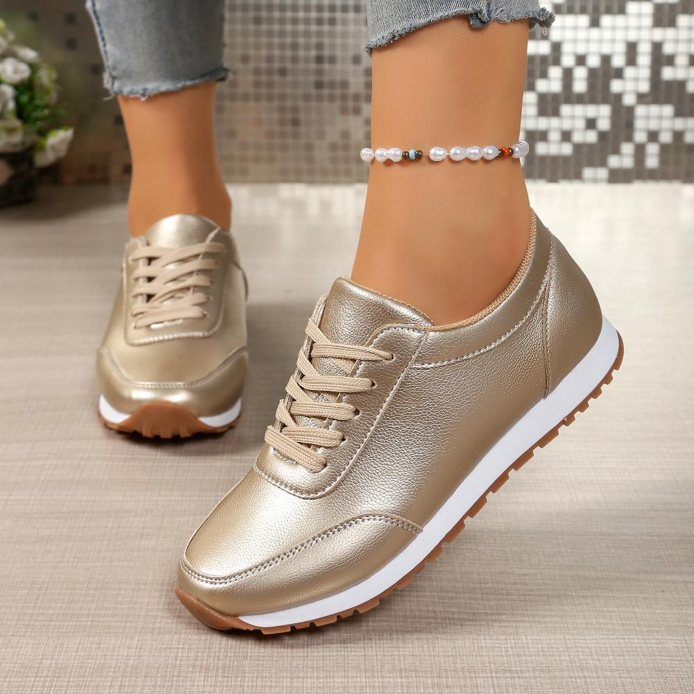 Модные повседневные кожаные кроссовки больших размеров Весна/осень Модные кроссовки с круглым носком на шнуровке на плоской низкой подошве для женщин