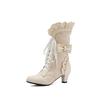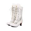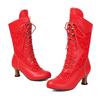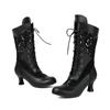 Осенне-зимние винтажные женские викторианские сапоги на шнуровке с высоким каблуком, ботильоны с оборками, обувь для косплея принцессы Лолиты для вечеринки