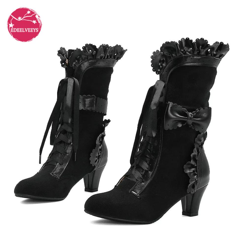 Осенне-зимние винтажные женские викторианские сапоги на шнуровке с высоким каблуком, ботильоны с оборками, обувь для косплея принцессы Лолиты для вечеринки — купить товар онлайн с бесплатной доставкой по всему миру!