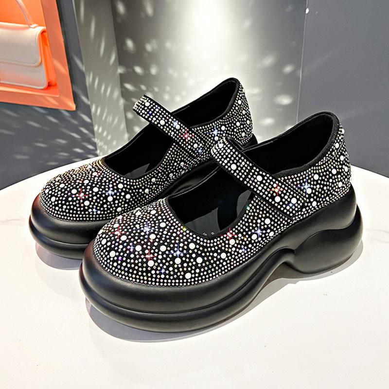 Летние Новые Повседневные Кроссовки на Платформе Роскошные Сандалии с Водяными Бриллиантами Взрывные Туфли Мэри Джейн на Липучке Женская Обувь Дизайнерские Пляжные Сандалии