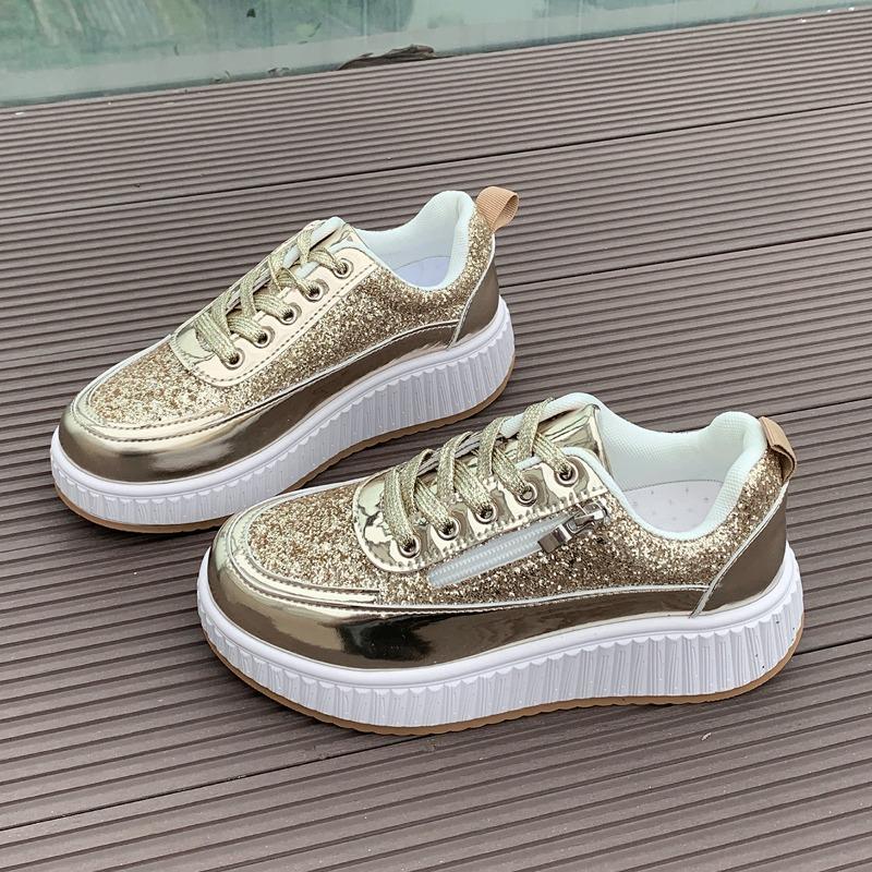 Женская повседневная спортивная обувь Осень Новая Круглый носок Передний ремешок Толстая подошва Нескользящая Износостойкая Обувь с низким верхом