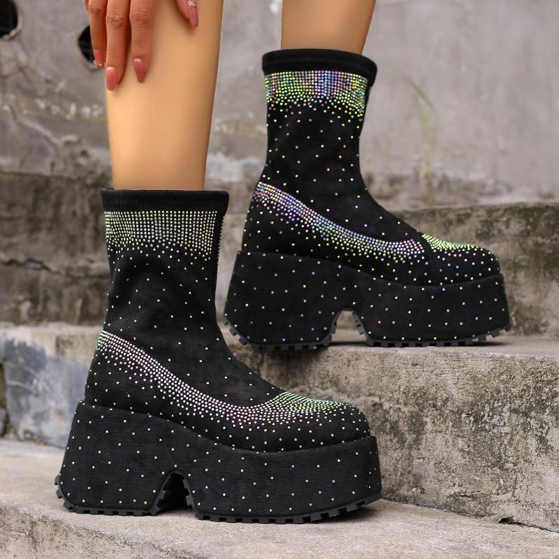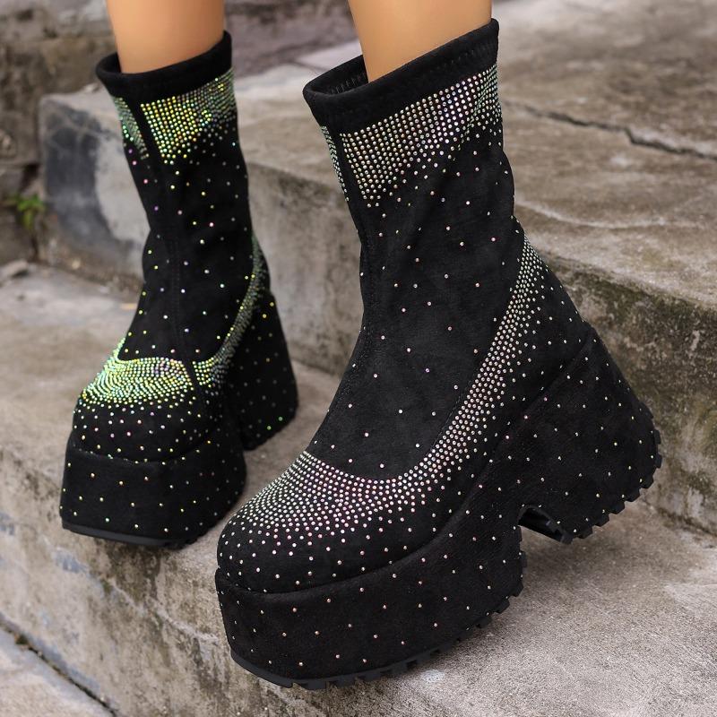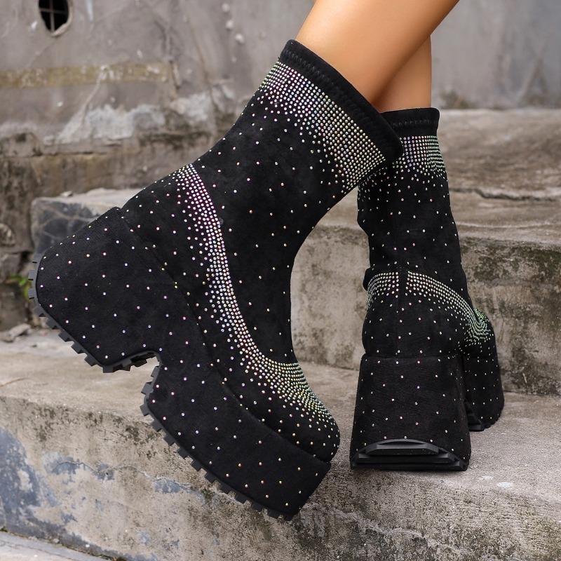 Осенние новые одинарные ботинки на квадратном каблуке, женские модные полусапожки с круглым носком, с рукавами-шортами и толстой подошвой