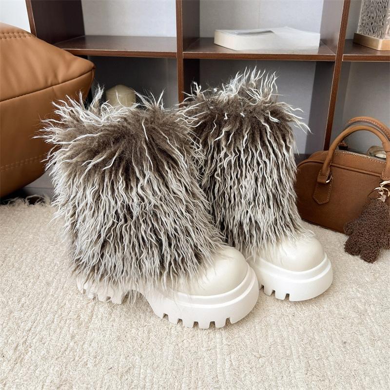 Зимние женские универсальные модные пушистые ботильоны на платформе Новые теплые утолщенные холодостойкие хлопковые туфли