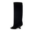 Женские туфли с открытым носком на толстом высоком каблуке, ботфорты до колена, крутые ботинки на скошенном каблуке, модный показ, большой размер, весенне-летние женские ботинки