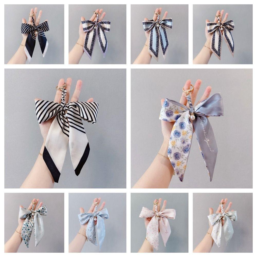 Flower Scarf Bow Keychain Printed Bag Accessories Headset Pendant Bowknot Bag Pendant Car Keychain