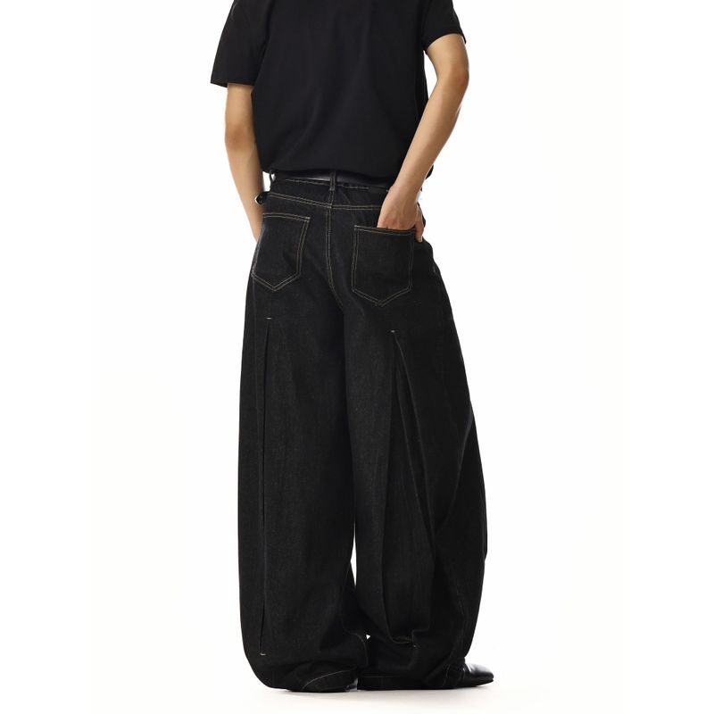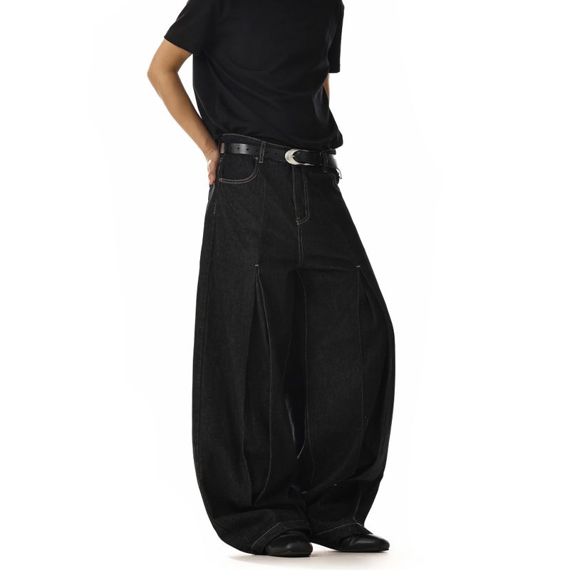 American Retro Denim Black Jeans for Men and Women with Pleated Design, Niche Loose Fit, Versatile Straight-Leg Wide-Leg Pants